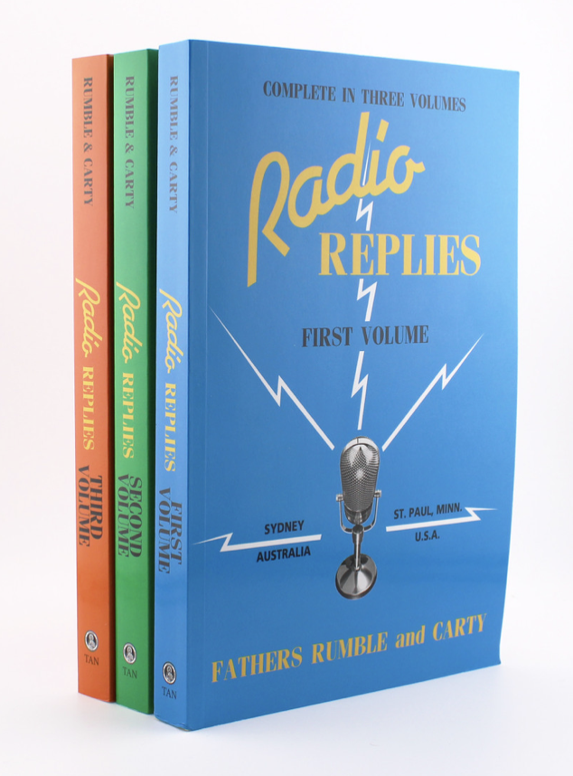 Now, reprinted here by TAN, find the complete collection of more than 4,300 questions and answers on every conceivable aspect of the Catholic Faith by these intrepid preachers and masters of apologetics. A masterwork of modern English-language apologetics by the pioneers of mass-communication evangelism, Radio Replies is a three-volume gold mind of Catholic apologetics answers, supremely useful both to defend the Faith and to learn more about it yourself. This immense collection of clear, succint, uncompromising, and powerful arguments for the eternal validity and truth of the Catholic religion also comes with a complete index for easy reference use. With forewords to each volume by Fulton J. Sheen, this work is a largely forgotten but absolutely priceless tool for evangelization.